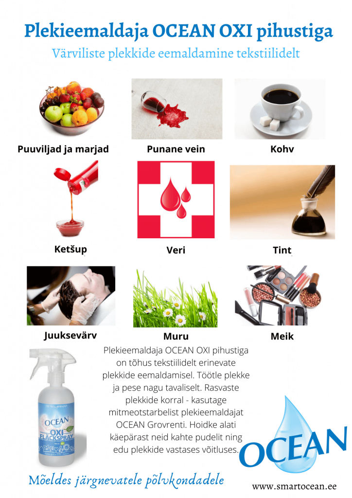 Värviliste plekkide eemaldamine plekieemaldajaga OCEAN OXI